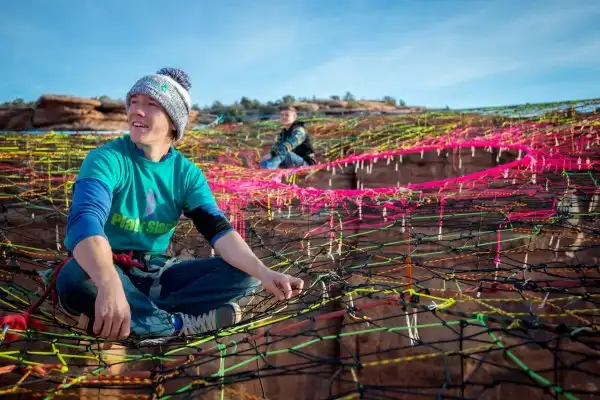 У группы экстремалов из Юты под названием «Моавские мартышки», нет проблем с головокружением или адреналином. Буквально на днях, они установили самодельную паутину на каньоне Моав, Юта, на высоте в 122 метра, чтобы спрыгнуть с нее. Пятиугольная сеть ручной работы, расположена на расстоянии 60 метров от ближайшей скалы и на высоте 122 метра.