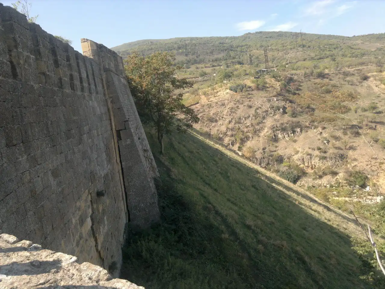 В юго-западном углу крепостной стены цитадели расположен прямоугольный проем, ведущий в угловую башню, через которую когда-то был вход на Горную стену (Даг-бары), начинавшуюся как раз от этой башни. В настоящее время сохранились лишь небольшие участки этой стены, но их изучение показало, что это было грандиозное сооружение толщиной 3 и высотой 10 метров, с многочисленными укрепленными фортами, полуфортами и прямоугольными башнями. Эта мощная линия обороны, извиваясь по сплошному горному рельефу, уходила вглубь Кавказа более чем на 40 километров.