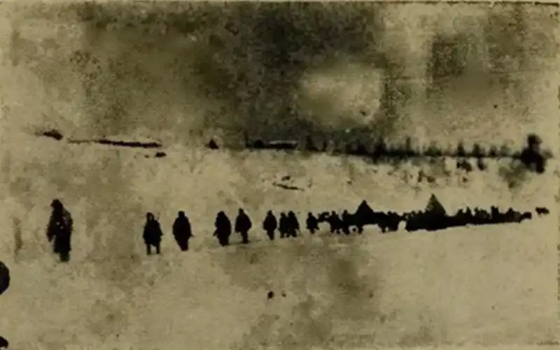 Всего в отряде было 730 человек, включая аж двух генералов и 11 полковников, все волонтеры из оставшихся под белым контролем районов Дальнего Востока и русских колоний Китая. Белые испытывали большой недостаток в оружии, поэтому пулеметов было всего два. Винтовок было предостаточно, но больше чем наполовину это были однозарядные берданки, спасибо, что не фузеи петровских времен. Боеприпасов было по меркам Гражданской не так уж мало, по 250 патронов и по полтора десятка гранат на брата. Дело осложнялось тем, что это был «разовый» боекомплект, снабжения не предусматривалось. Артиллерии не имелось, да и не требовалось, от места предполагаемой высадки до Якутска надо было проделать больше 800 км по диким пустошам пешком (в дневнике экспедиции упоминается как-то, например, о болоте шириной 8 км), пушки просто никто бы не потянул.