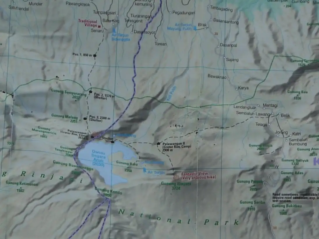 Ринджани - одна из 4 самых высоких гор Индонезии. Это вулканический конус высотой 3726 м с кратерным озером посередине. С вершины Ринджани видны северное побережье Ломбока и Яванское море.