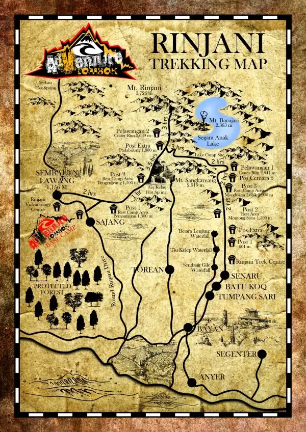 Треккинговые походы, которые предлагаются на Ломбоке в каждом отеле, подразумевают покорение вершины вулкана вместе с проводником и носильщиком. Походы отличаются друг от друга как по стоимости, так и по продолжительности. Самый простейший подъем включает прогулку до края катера, расположенного на высоте 2700 метров, откуда открываются восхитительные пейзажи.