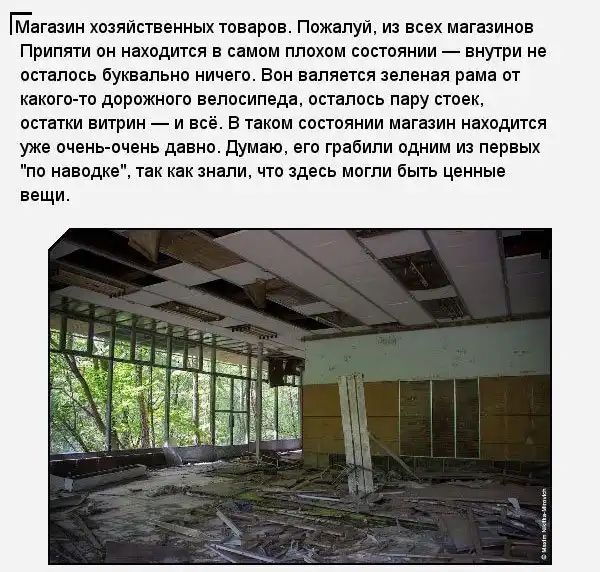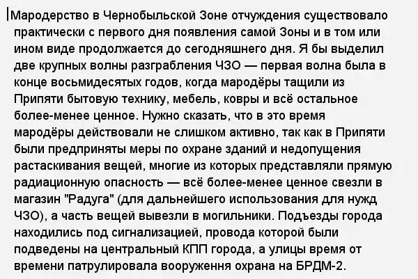 В зоне отчуждения близ Чернобыльской АЭС постоянно промышляли мародеры. Несмотря на то, что все более-менее ценное было вывезено оттуда еще во второй половине 80-х, и сейчас там порой можно встретить людей, ищущих, чем поживиться.