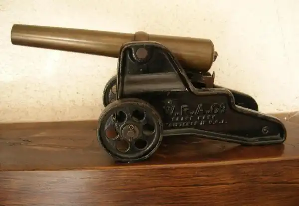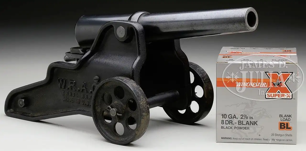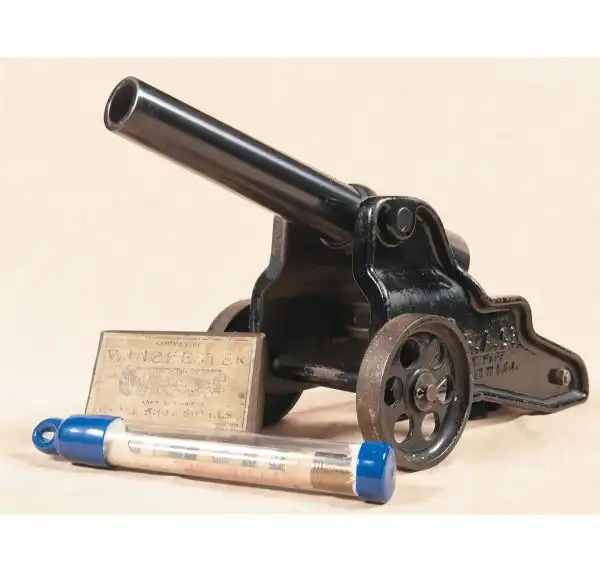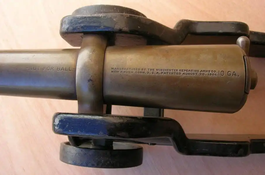 Сигнальная/салютная пушечка Cannon Winchester 1896/1901 . Орудие использует ХОЛОСТЫЕ патроны cal. 10 ga. , казённого заряжания . Категорически не рекомендуется ничего пихать в ствол , о чём есть соответствующая надпись : "Not for ball" , на стволе. Девайсы производилис Winchester Repeating Arms Company до 1958-го года, а с 1976-го и по сей день - компанией Bellmore- Johnson Tool Co по лицензии Olin Corporation .