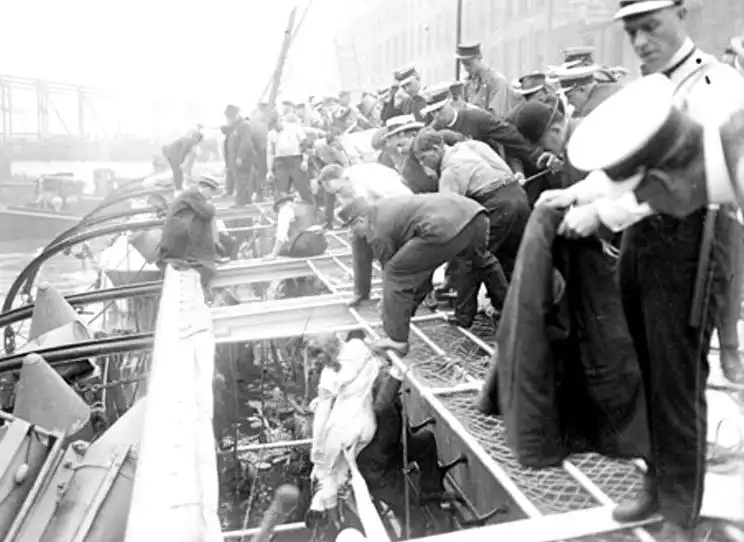 Когда стало ясно, что все, кого можно было спасти, уже находятся в безопасности, снабженные одеялами, чтобы не замерзнуть, пришел черед водолазов — работа столь же мрачная, сколь необходимая. В течении следующих суток из реки, перегороженной ниже по течению сетью, вылавливали тела. Водолазы пробирались внутрь корабля, в залитые водой отсеки. Многих приходилось сменять через несколько часов работы — человеческая психика не выдерживала такого количества трупов. Видавший многое капитан Дон Донован, однако, проводил в воде целые дни — кто-то же должен был вытащить тела даже из самых отдаленных отсеков.