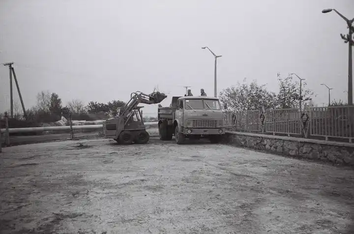 Погрузка грунта в кузов автомобиля. Предположу, что технику использовали где-то в районе завода «Юпитер», где уровни радиации были значительно выше, чем в других микрорайонах.