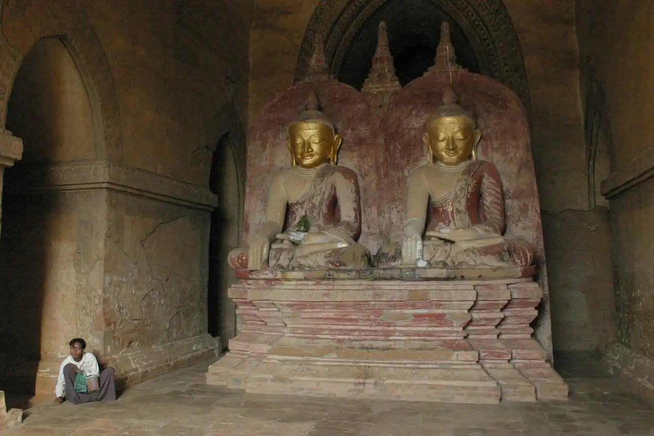 В отличие от ступ, Гу-храмы использовались для медитации, поклонения Будде и ритуалов. Бывают храмы с одним или четырьмя входами, по одному со всех сторон. Бирманские храмы отличаются стреловидными арками и сводчатыми палатами уже начиная с XI в. Это интересный момент хотя бы по той причине, что в Индии сводчатые палаты распространены лишь с конца XII в. Кладка зданий отличается удивительной степенью совершенства, многие здания уцелели после землетрясения 1975 г. Сколько ни пытались восстановить технику используемых в прошлом инженерных решений, этого сделать не удалось. В частности, это пытался сделать царь Бодопайя (1745-1819), но современные ему плотники и каменщики не имели знаний и умений в строительстве сводчатых структур такого масштаба, чтобы быть в состоянии создать аналог просторного внутреннего убранства храмов времен Паганской империи.