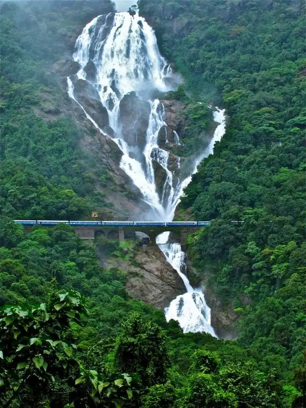 Южный Гоа. Водопад Дудхсагар (Dudhsagar falls) находится примерно в 120км от Арамболя, 100км от Вагатора, 60км от Панаджи, около границы штата Карнатака с Гоа, в предгорьях Западных Гат.