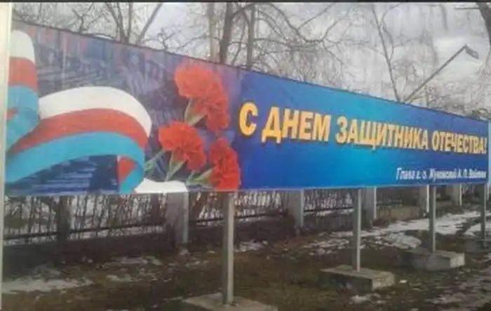 В прошлом году на поздравительном баннере в центре подмосковного города Жуковский также появился триколор Богемии и Моравии.