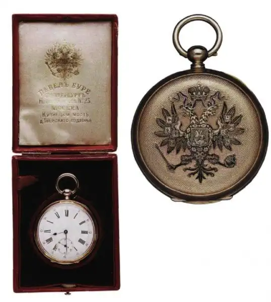 Главным образом эти подарки предназначались для высшей знати, сановников, чиновников, генералов и офицеров. Императорский Кабинет пользовался услугами таких швейцарских фирм как, «Zucien Brandt» или знаменитой «Нг. Moser & С-е», производивших дорогие — золотые, украшенные эмалями и драгоценными камнями часы.