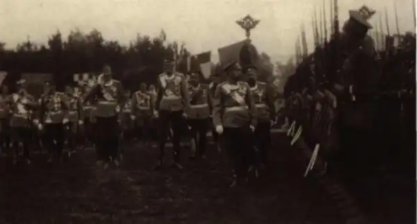 Император Николай II обходит строй 1-го батальона
