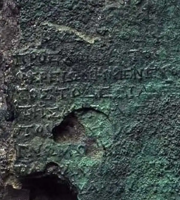 Антикитерский механизм был заключен в деревянный ящик, на дверцах которого находились бронзовые таблички, содержащие руководство по его применению с астрономическими, механическими и географическими данными. Интересно, что среди географических названий в тексте встречается ΙΣΠΑΝΙΑ (Испания по-гречески), что является старейшим упоминанием страны в этой форме, в отличие от Иберии.