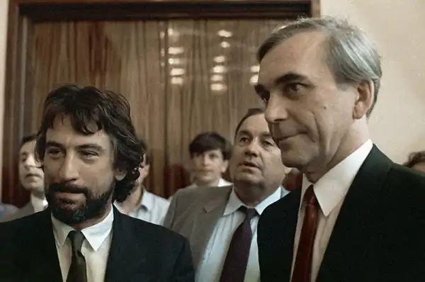 Рассказывает Михаил Козаков: «Москва, 82-й год, февраль. За окном поземка. Час дня. Пустой московский зал ресторана со знаменитой лестницей. А по лестнице спускается человек невысокого роста, коротко, под ноль, стриженая голова, брюки, спортивная куртка, очень напоминает какого-нибудь кавказца. «Кавказец» ближе подходит. Я охренел: действительно, Роберт Де Ниро собственной персоной. Великий Де Ниро — «таксист», «бык», «охотник на оленей», которому я пожимаю протянутую им руку! И на своем ужасном английском лопочу о своих восторгах от увиденных фильмов с его участием. Роберт улыбается своей знаменитой, кривоватой, только денировской улыбкой. Ему приятно. Он удивлен: я чуть ли не единственный человек из публики, который его признал в этой Москве… Роберт был молодым и блистательным, в зените своей мировой славы. А я, мы — Регина, Андрей Миронов, Олег Янковский, Илюша Авербах, Никита Михалков — не раз выпивали с американской звездой, вели всякие, иногда весьма интересные разговоры. Для нас, как мне кажется, особенно интересные, так как «железный занавес» еще упирался в планшет земли, и мы как бы подглядывали в незаметные щели, неожиданно открывшиеся».