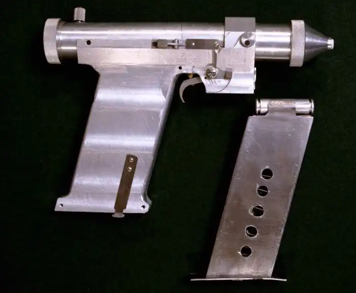 В 1984 году в рамках программы «Алмаз» для защиты одноименных советских ОПС (орбитальных пилотируемых станций) и ДОС (долговременных обитаемых станций) «Салют» от спутников-инспекторов и перехватчиков потенциального противника в Военной академии Ракетных войск стратегического назначения (РВСН) было разработано по-настоящему фантастическое оружие — волоконный лазерный пистолет.