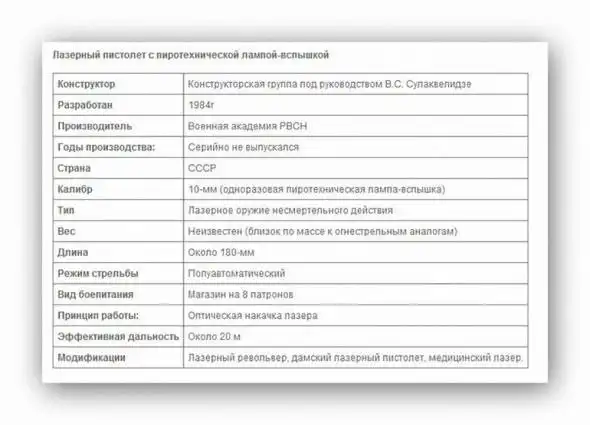 Конструкторы ставили своей целью разработку компактного оружия для выведения из строя оптических систем противника.