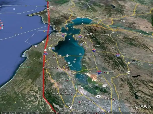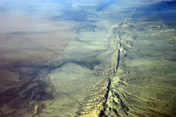 Полоса, протянувшаяся от побережья к северу от Сан-Франциско до Калифорнийского залива и уходящая в глубь земли примерно на 16 км, представляет собой линию соединения двух из 12 тектонических плит, на которых расположены океаны и континенты Земли.