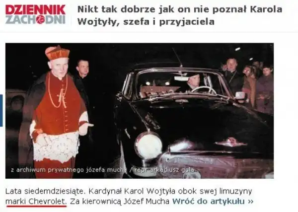 Доходит до смешного — на многих польских автомобильных сайтах фотография с чёрной «Волгой» подписана «будущий Папа Римский и его Шевроле»!
