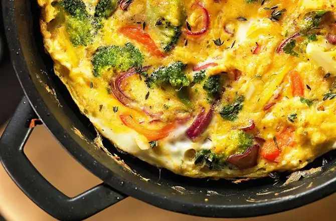 Фриттата — итальянский омлет, который готовят с начинками из сыра, овощей, колбасы или мяса. Обычно фриттату жарят на плите, после чего доводят до готовности в духовке. Неаполитанскую фриттату часто готовят с использованием макарон. Традиционная крестьянская фриттата содержит лук-порей и сыр пармезан. Во фриттату не добавляются продукты, содержащие большое количество жидкости. Например, если вы хотите добавить помидоры, их сначала следует разрезать, избавить от семян и жидкости, потом дать полежать в сухом месте 15-30 минут и только после этого использовать для готовки. Сегодня итальянскую фриттату готовят в сковороде с двумя ручками, специально созданной для этого блюда.