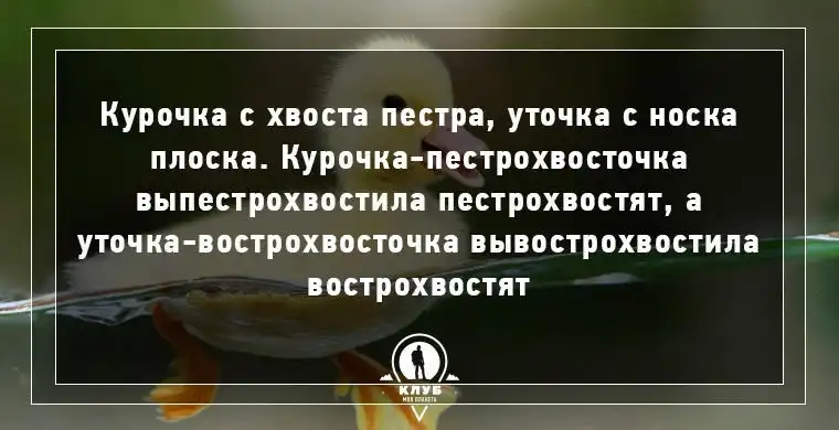 Сможете повторить: Макака коалу в какао макала, а кукушка кукукшонку купила капюшон, пока галдят грачата на галчат.