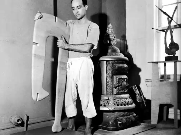 Исаму Ногучи и его творение — «Ундина». 1925г. На фотографии ему 21 год.