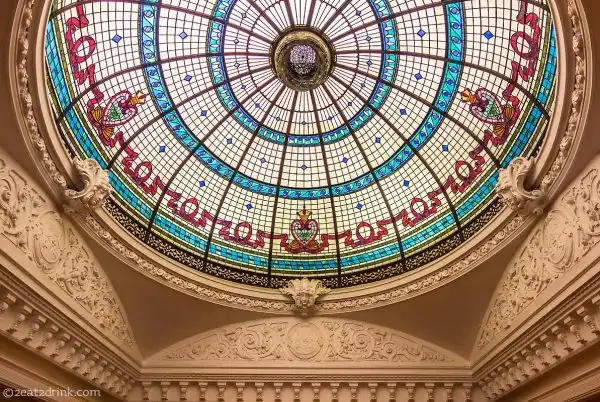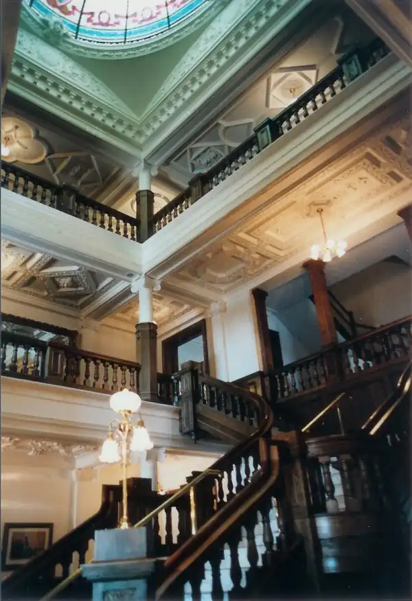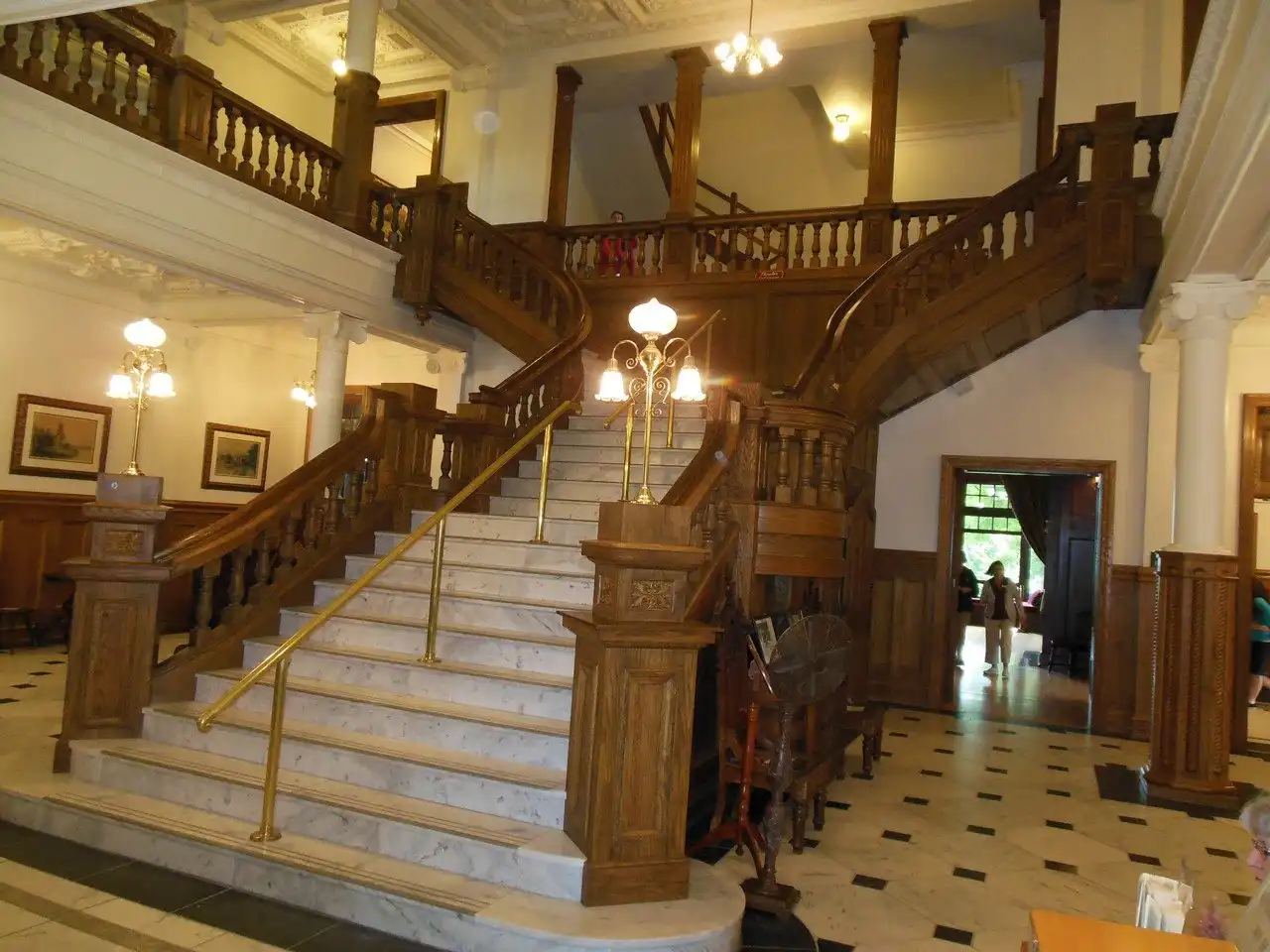 Вокруг центрального атриума (на уровне первого этажа) расположены пять главных помещений: приемная комната, библиотека, столовая, бильярд и комната для организации балов. Другие, открытые для публики помещения, находятся в подвале, это бассейн, и на пятом этаже специальный зал для распивания чая, который выходит на террасу крыши.
