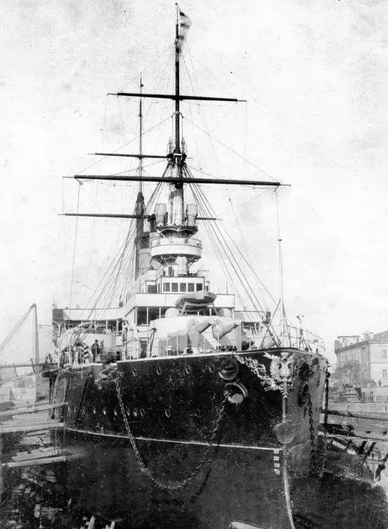 Эскадренный броненосец "Ростислав" в доке,