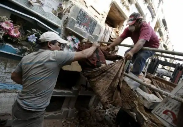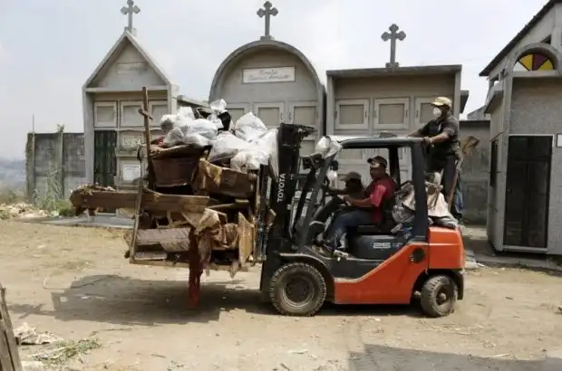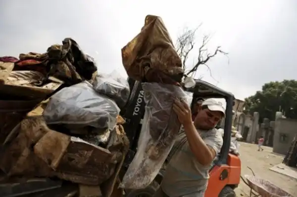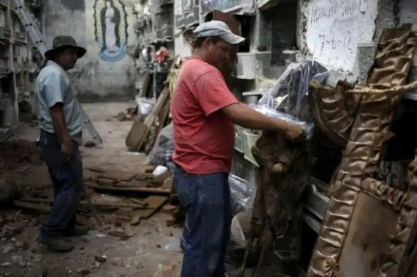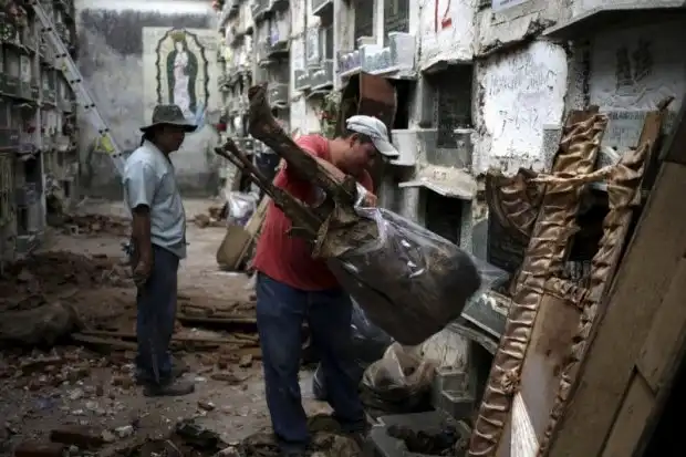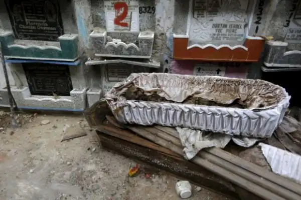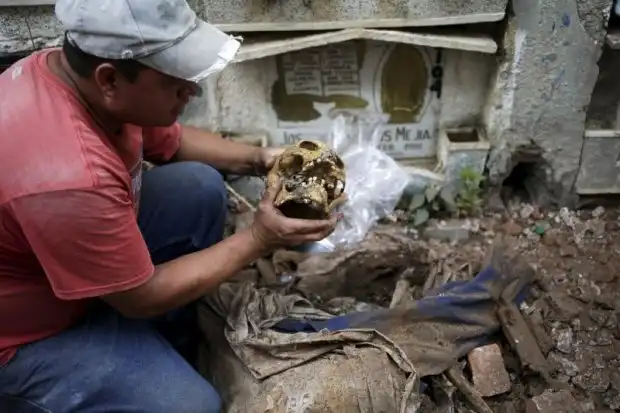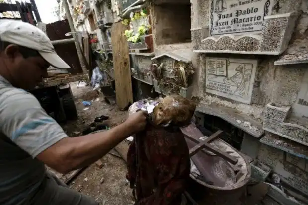 На общественном кладбище Гватемалы, когда заканчивается срок аренды могилы, а родственники не могут или не хотят его продлевать, могилы вскрывают, останки запаковывают в пластиковые пакеты и захоранивают в общие могилы. Так как погода в Гватемале теплая и сухая, тела не разлагаются, а превращаются в мумию. Эти жутковатые кадры сделаны 15 апреля 2015 года.