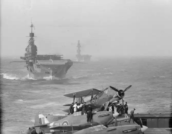 Авианосец HMS "Victorious" приводит HMS "Eagle" и