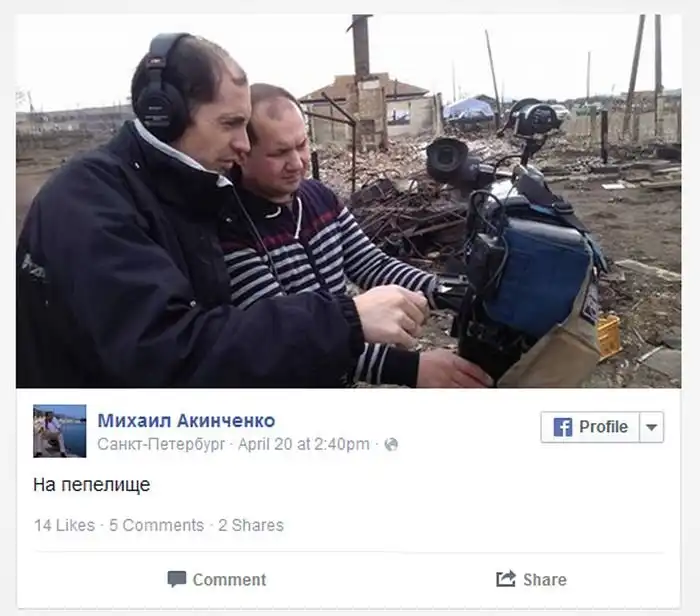 Во время съемок одного из репортажей о пожарах в Хакасии журналист Первого канала Михаил Акинченко поджег сухую траву, чтобы обеспечить «эффектный фон» в кадре. Инцидент случился в поселке Колодезный и получил огласку благодаря одной местной жительнице, заметившей, как мужчина бросил на траву окурок, после которого началось возгорание. С соответствующей жалобой свидетельница обратилась в местное ОМВД. Полицейские задержали корреспондента, а после дачи показаний отпустили. Сам он сказал, что совершил поджог «чтобы снять фон». Представители Первого канала пообещали наказать виновных в халатности сотрудников и принесли извинения за их действия.