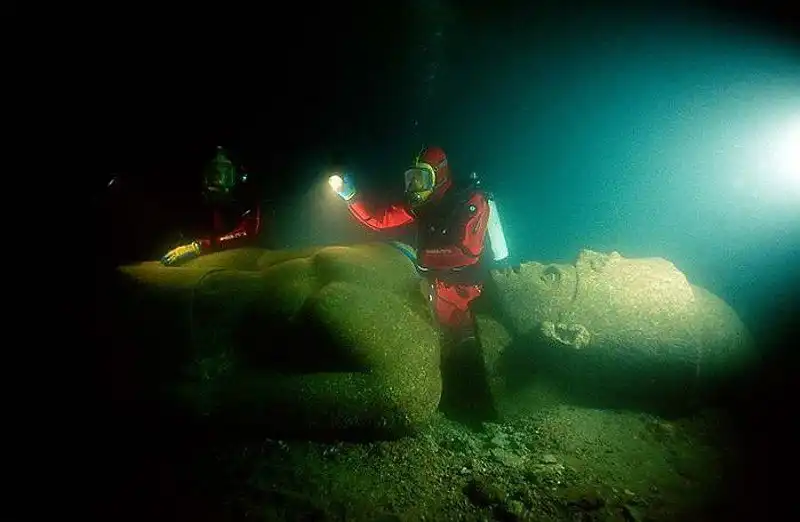 Археологи под руководством Фрэнка Годдио, основателя Европейского института подводной археологии в Париже, объявили, что обнаружили на дне моря развалины древнего города, его пристани, храмы, статуи греческих богов, жилые дома… Открытие произошло случайно, когда археологи участвовали в поиске и подъеме затонувших кораблей наполеоновского флота, потопленных в 1798-м году британцами во главе с адмиралом Нельсоном.