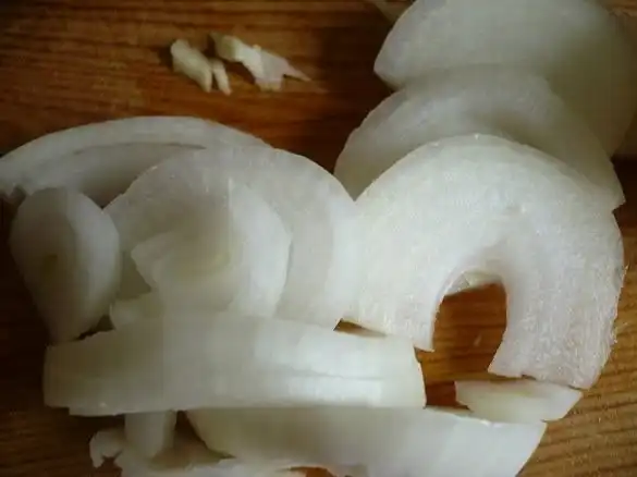 7. Лук перемешать с оставшейся столовой ложкой майонеза, посолить, поперчить.