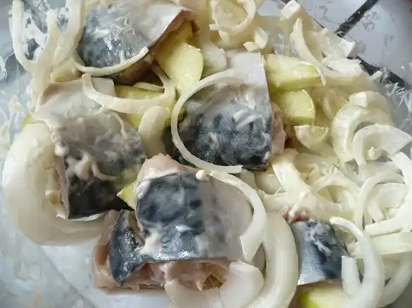5. Обмазать рыбу 1 ст.л. майонеза, слегка посолить.