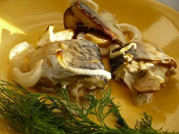8. Готовую скумбрию с яблоками подавать с гарниром из картофельного пюре или свежих овощей.
