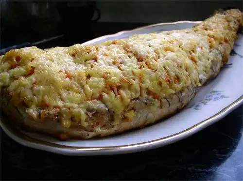 Дать блюду слегка остыть, вытянуть нитки и нарезать на порционные кусочки.