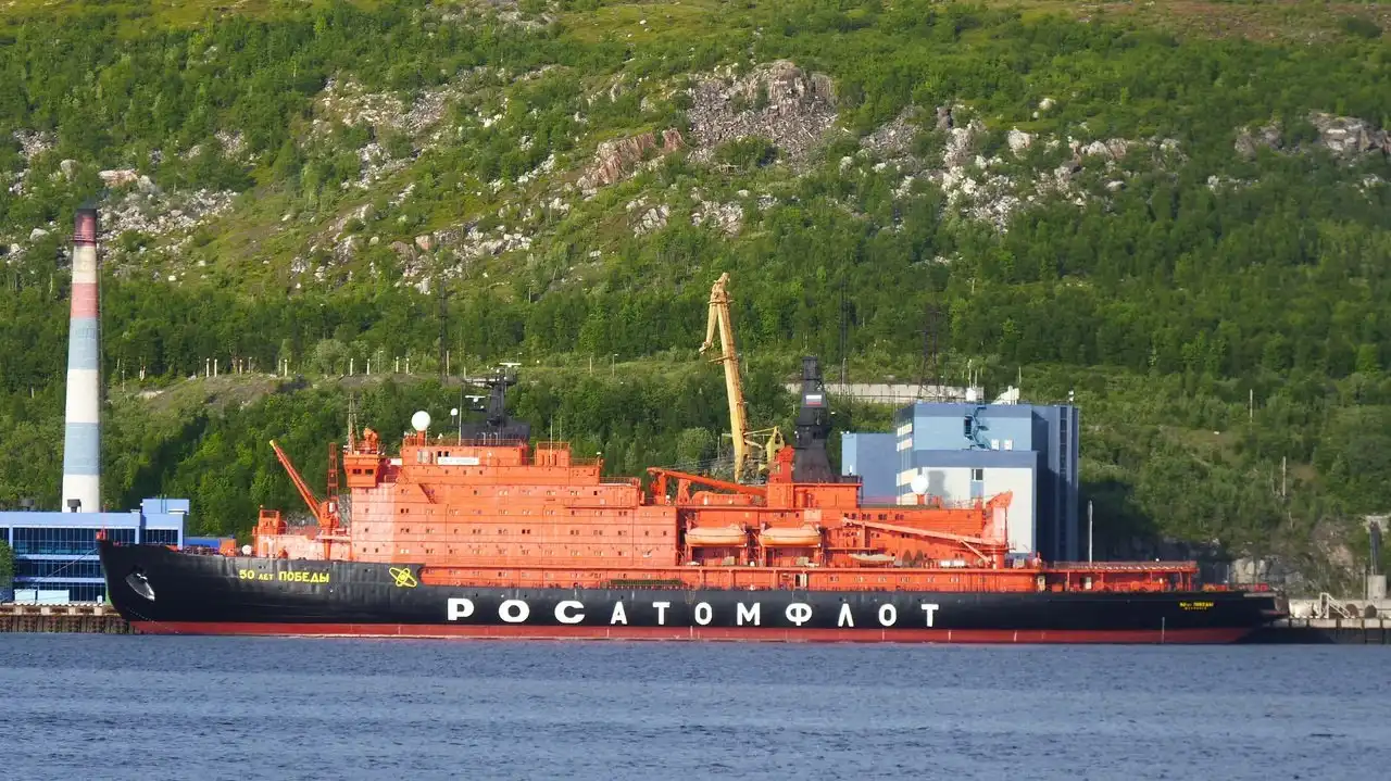 Самым крупным в мире ледоколом является «50 лет Победы», Он был заложен на Балтийском заводе в Ленинграде в 1989-ом, а уже спустя четыре года его спустили на воду. Правда, строительство не закончилось, а было заморожено из-за финансовых неурядиц. Лишь в 2003-ем его решено было возобновить и в феврале 2007-го «50 лет Победы» начал проходить испытания в Финском Заливе, продлившиеся пару недель. Затем он самостоятельно отправился в порт приписки — город Мурманск.