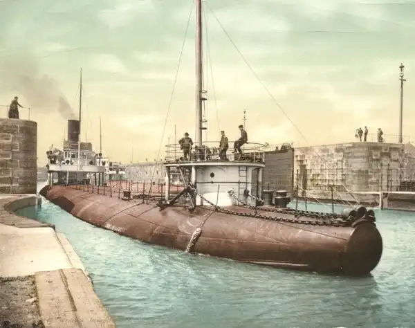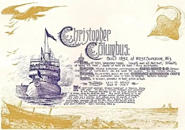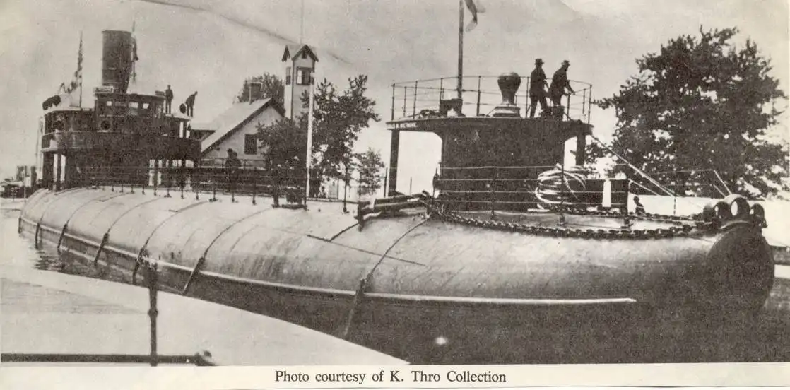 1887 — 1898: Whaleback steamships это был тип грузового парохода с корпусом, который непрерывно изогнутый выше ватерлинии. При полной загрузке, только закругленная часть корпуса ( «Whaleback» ) можно было увидеть выше ватерлинии. Такие корабли использовались на Великих озерах Канады и США, в частности, для перевозки зерна или руды.