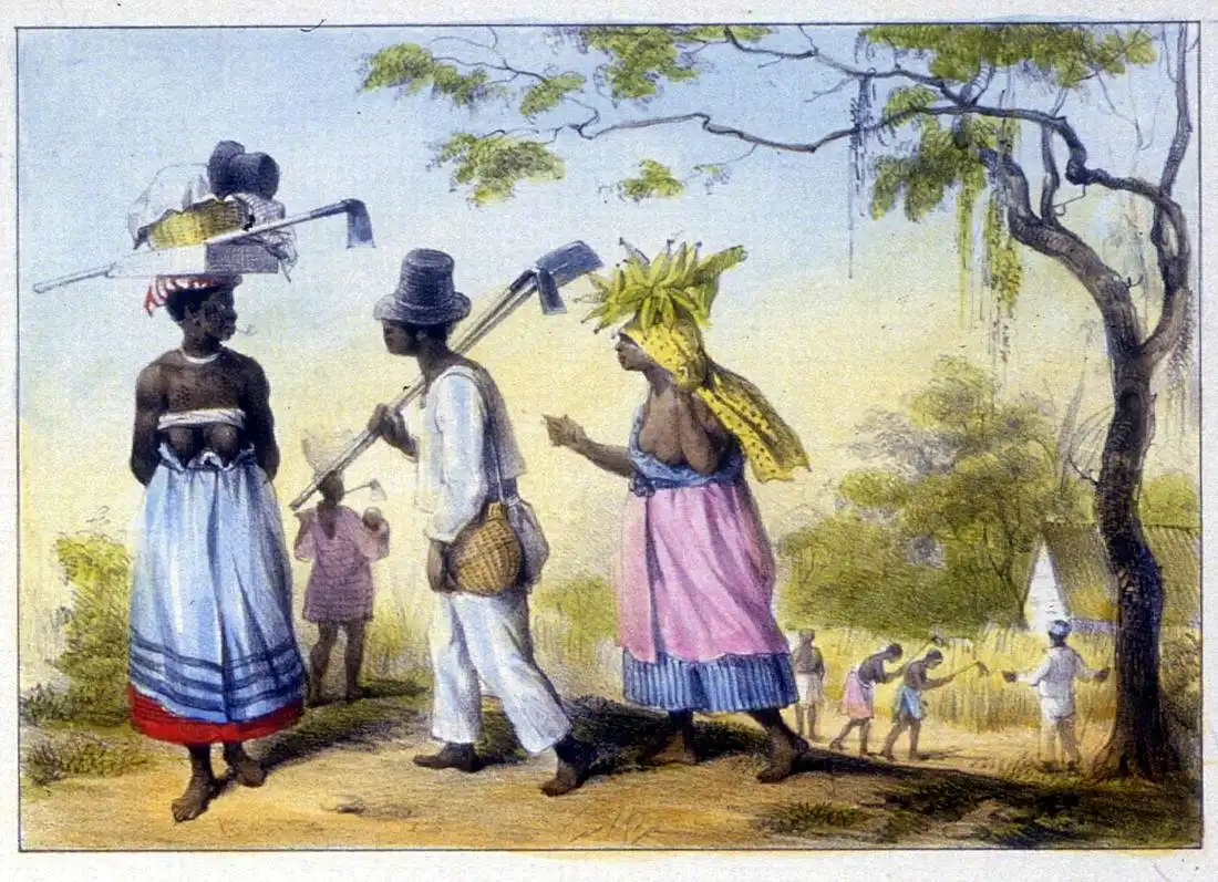 Рабы с плантации по выращиванию сахарного тростника (Суринам, 1831 год)