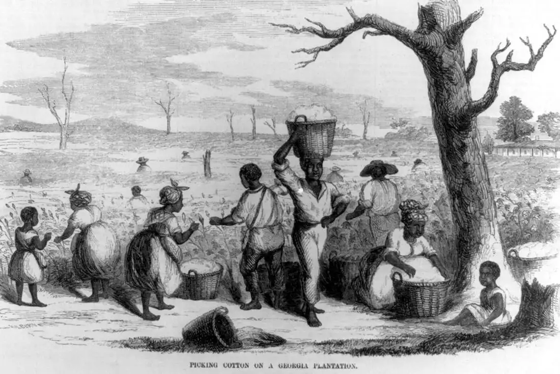 Рабы занимаются сбором хлопка (штат Джорджия, 1858 год)