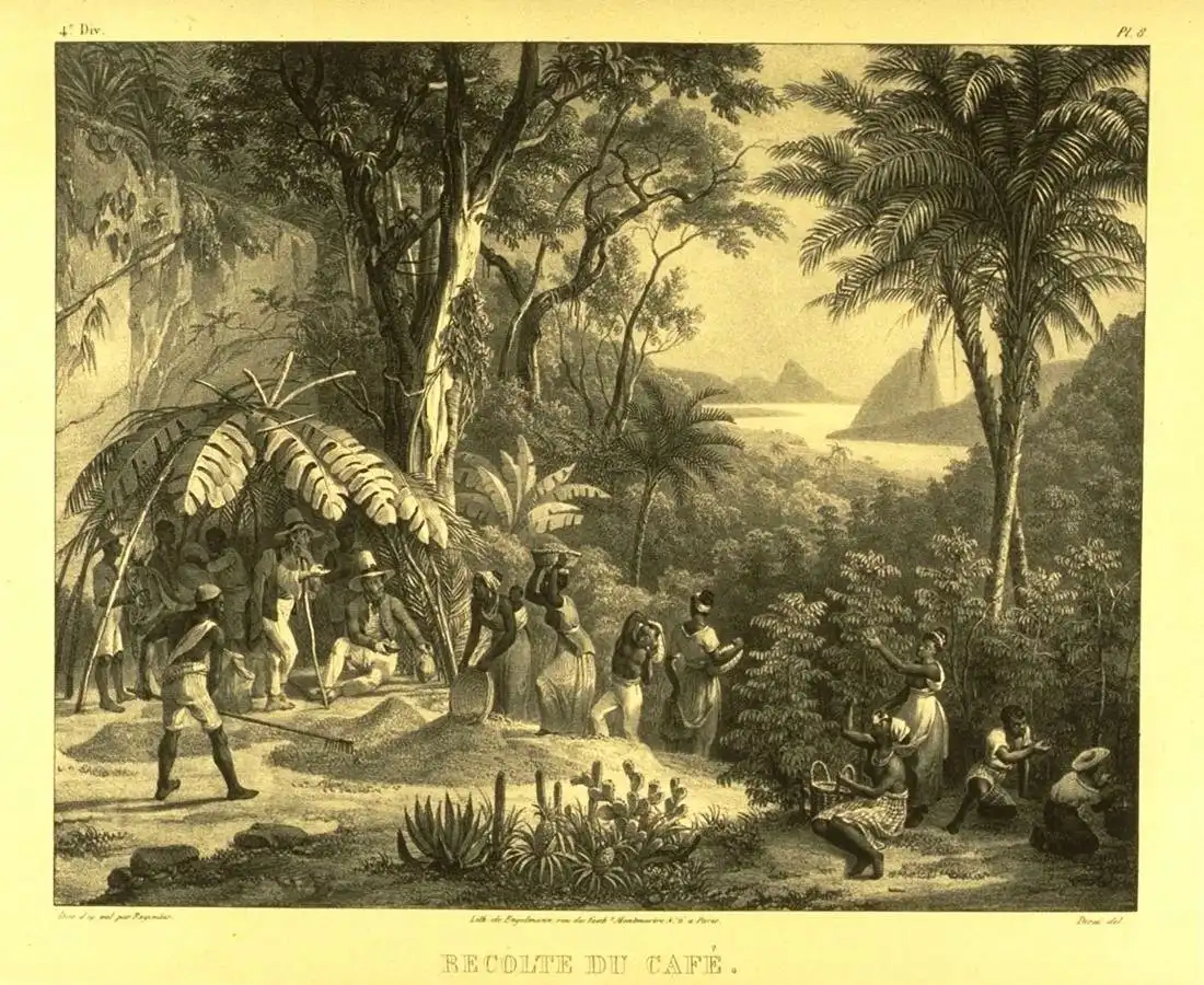 Рабы занимаются сбором урожая кофе (Бразилия, 1830-е годы)