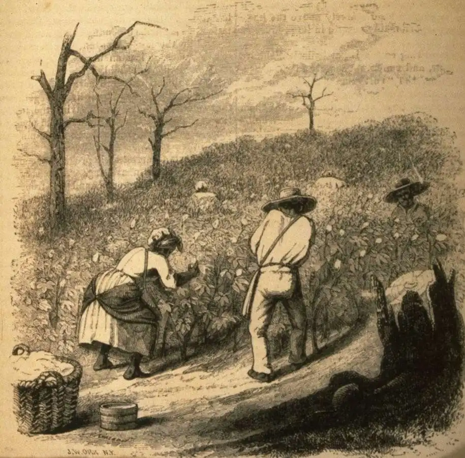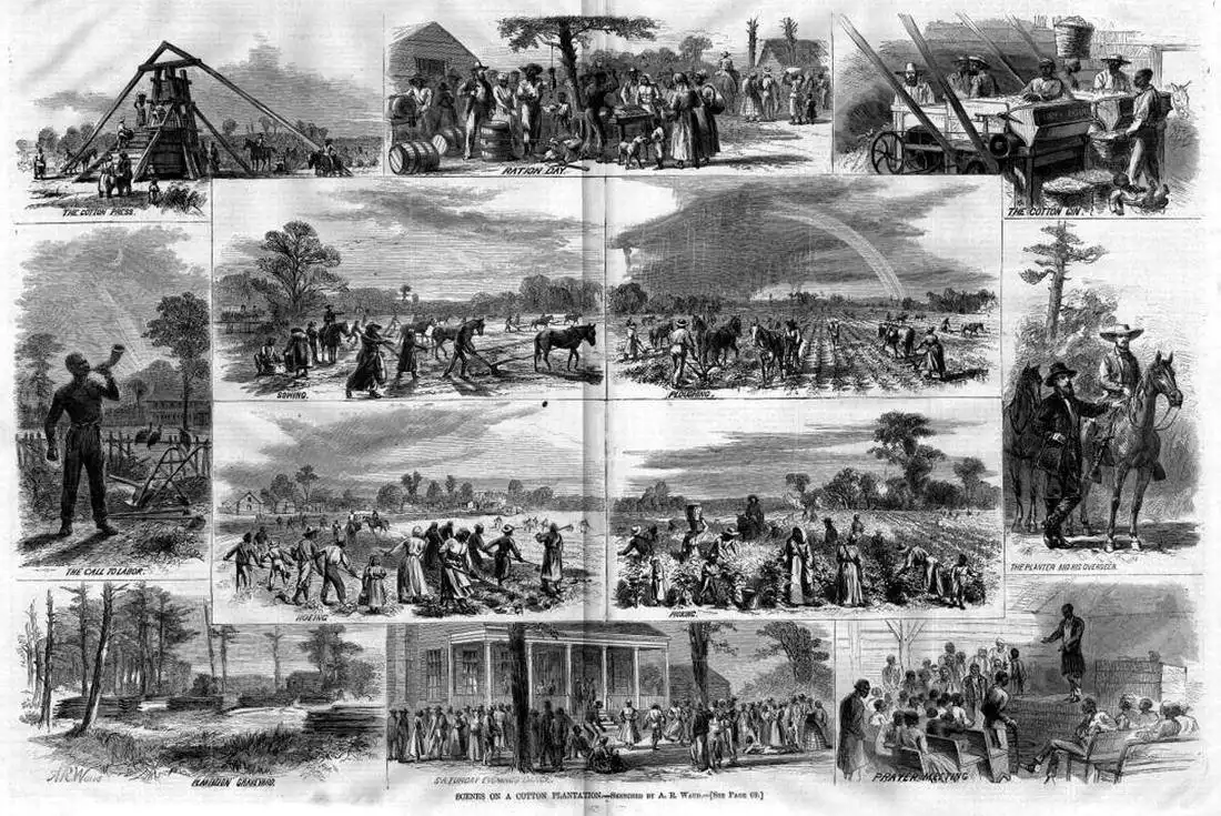 Труд рабов на хлопковой плантации (Юг США, 1861 год)