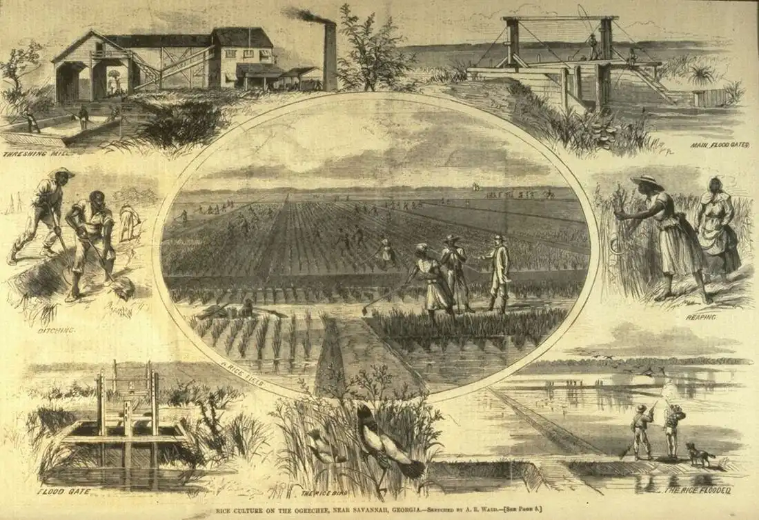 Производство риса на плантации (штат Джорджия, 1867 год)