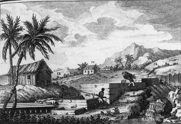 Вид на плантацию сахарного тростника (Французская Вест-Индия, 1762 год)