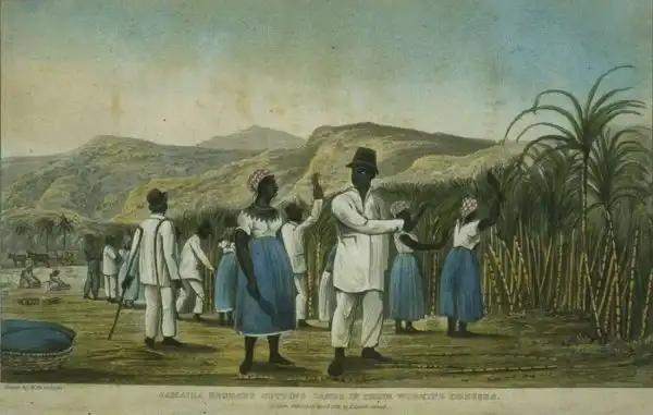 Рабы занимаются уборкой сахарного тростника (Ямайка, 1815 год)