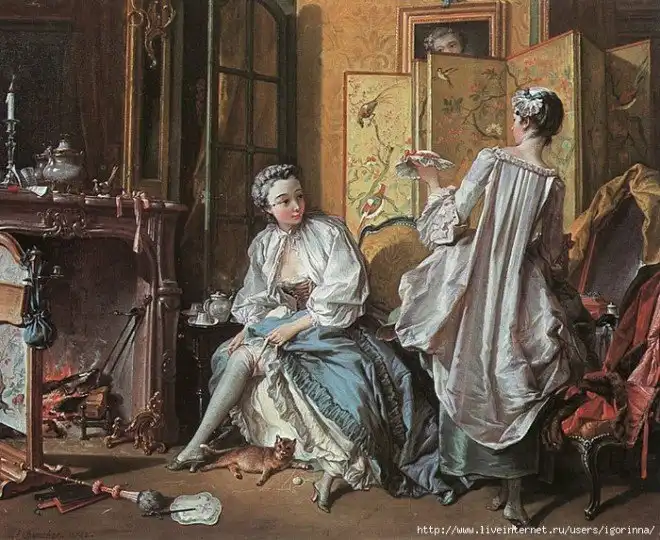 Первыми, кто попытался открыто привлечь взгляд к своим ногам, стали красавицы кокетливой эпохи рококо. Подол платья приподнялся, обнажив ступню и щиколотки, а из-под него стала соблазнительно выглядывать белоснежная нижняя юбка. Появилось даже т.н. retrousser – «искусство показа ног».