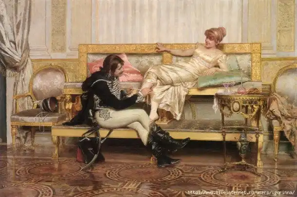 В этом искусстве очень важную роль играли подвязки для чулок. Теперь они поднялись выше колена, и дамы чрезвычайно любили их поправлять – естественно, на виду у кавалеров. Некоторые даже писали на подвязках всяческие девизы, а задачей ухажера было суметь их прочесть.