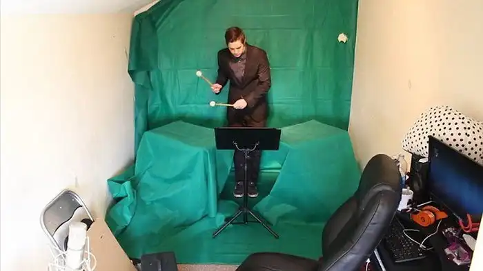24-летний житель графства Йоркшир, Великобритания, Бен Морфитт (Ben Morfitt) взял у своего друга видеокамеру и с ее помощью записал видеоролик, на котором мы видим оркестр с 70-ю музыкантами, в роли каждого из которых выступает сам молодой человек. Все фрагменты были сняты в спальне парня на фоне зеленого полотна. Бен исполнил на разных инструментах партию из одного и того же произведения. Музыкой Бен увлекся еще в детстве, первоначально он играл на барабанах, но в последние годы начал собирать разные музыкальные инструменты и учился играть на них, что позволило ему сыграть на 9 разных видах инструментов, в их числе скрипки, барабаны, гитары, валторны, контрабасы, трубы и прочее.
