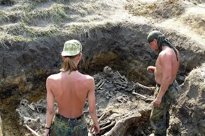 На первый взгляд ничего жуткого в Мясном боре нет. Но есть история: во время Великой отечественной войны здесь погибли десятки тысяч солдат, и русских, и немцев. Останки до сих пор не похоронены. Говорят, что здесь можно найти страшные артефакты военного времени: штыки, каски, костяки и черепа.