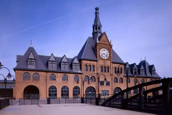Железнодорожная станция работала с 1914 по 1988 год, а после была закрыта и обнесена колючей проволокой. Во всех деталях рассмотреть объект в стиле beaux-arts можно со двора здания.
