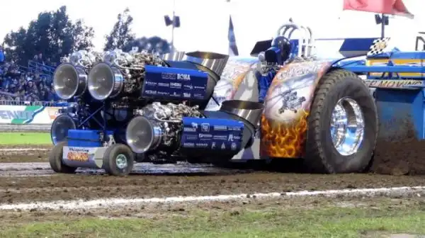 Это зрелище завораживает — огромные колесные трактора, которые несутся по трассе при помощи нескольких газотурбинных двигателей.