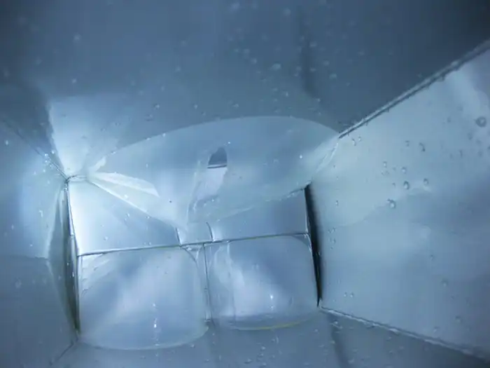 Очень интересные пузыри были обнаружены одним покупателем внутри пустой коробки из-под сока. Являются ли эти пузыри производственным браком или они специально сделаны для уменьшения объема коробки, не известно.