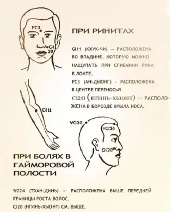 2. Побороть надоедливый насморк помогут 3 точки на лице